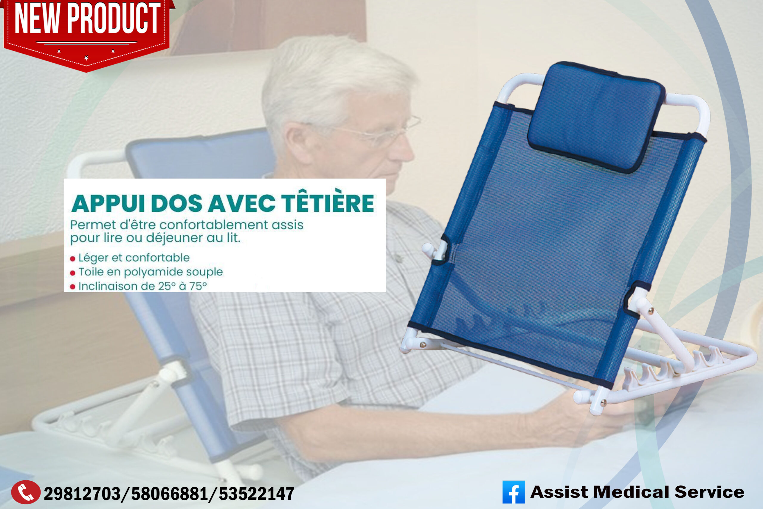 L’appui dos avec têtière permet d’avoir un très bon maintien du dos et de redresser le buste dans une position agréable. Disposant de plusieurs crans de position, il se règle et s’installe en toute sécurité dans le lit.