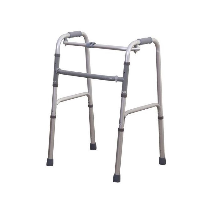 Un ingénieux système de réglable par clip, permet d’utiliser le déambulateur sous forme articulée et aussi sous forme fixe