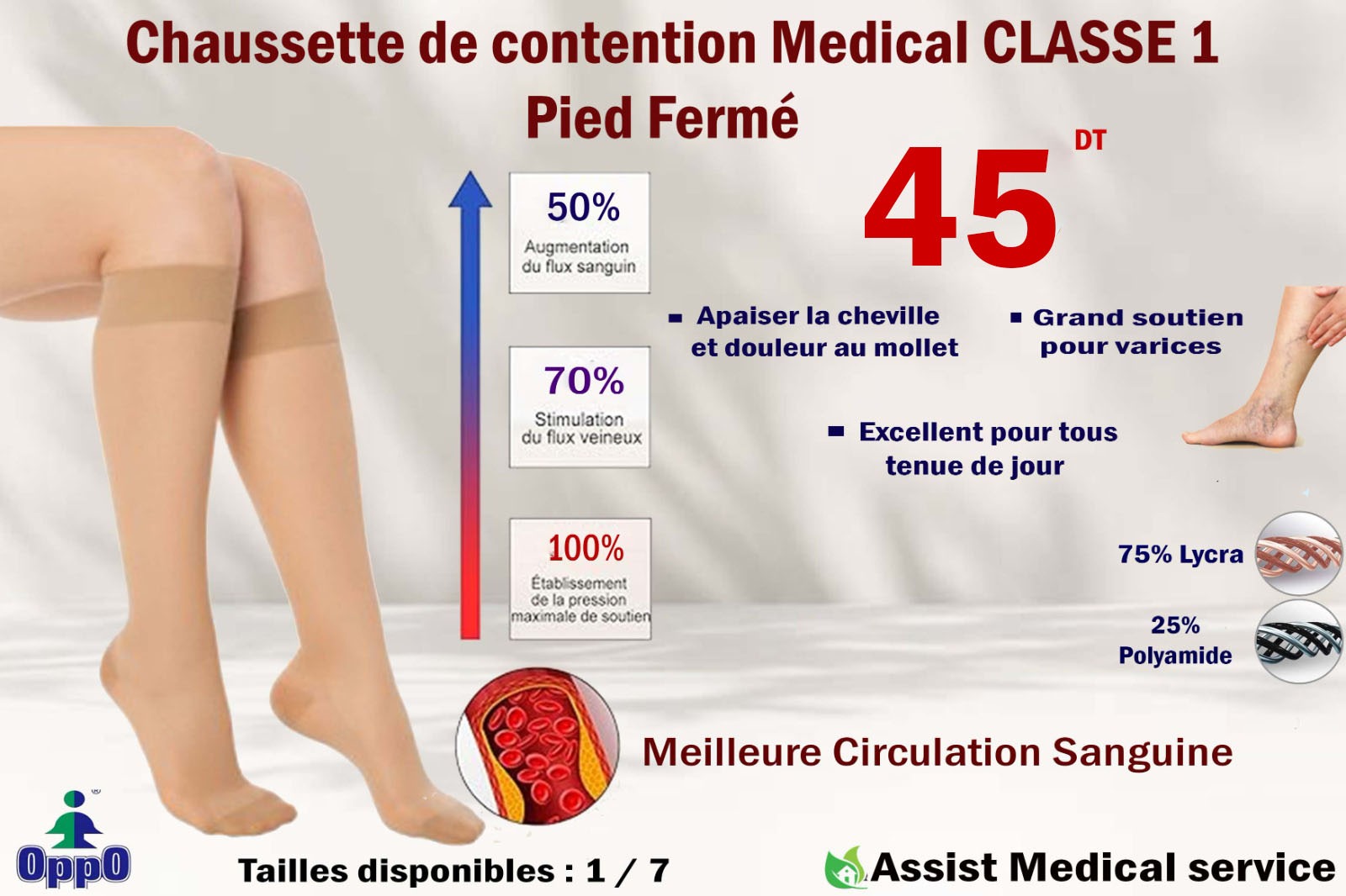 OPPO CHAUSSETTE DE CONTENTION PIED FERME CLASSE 1 TAILLES 1 / 6